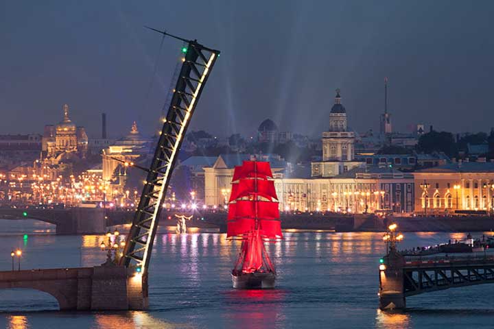 این فستیوال شامل مجموعه هایی از قبیل رقص زیبای باله، اپرا کلاسیک و موسیقی و برنامه هایی است که توسط خواننده ها و رقصنده ها و نوازندگان روسی انجام میشود. جش بادبان سرخ نقطه ی اوج این مراسم میباشد . فستیوال بادبان های سرخ بزرگترین فستیوال فضای باز روسیه است که در زمان شبهای سفید سنت پترزبورگ برگزار میشود. این فستیوال برگرفته از داستانی زیبا از الکساندر گرین نوسینده روسی میباشد.