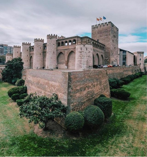 آلفونسوی اول (Alphonso I) آراگون در سال ۱۱۱۸ زاراگوزا را تسخیر کرد و این قصر مستحکم، اقامتگاه پادشاه شد. کاخ، باغ مسحورکنندهای دارد که به نام ایزابلای آراگون، دختر پیتر سوم آراگون که در آن به دنیا آمد، حیاط سنت ایزابلا نام گرفت. بعدها پادشاهان کاتولیک، ایزابلا و فردیناند، یک کاخ مدجّن شیک و بهروز در الجعفریه ساختند. از طرف دیگر، سلول زندانی در طی تفتیش عقاید در این قلعه قرون وسطایی وجود داشت و آنتونیو پرز وقتی فیلیپ دوم دستور بازداشت او را داد، در آن زندانی بود.