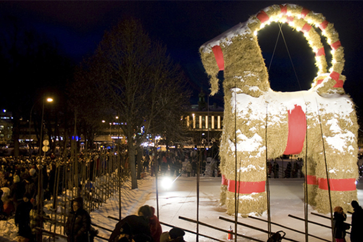 در سال ۱۹۶۶ میلادی یک بُز کریسمس ۱۳ متری در شهر «یوله» (Gävle) برای «جشن ظهور مسیح» ساختند؛ اما این سنت کریسمس در سوئد، به طور ناخواسته تبدیل به رسم دیگری شد. مردم هر سال تلاش میکردند این بز را آتش بزنند و به طور کامل آن را بسوزانند. از آن سال، ۲۹ بار موفق به انجام این کار شدند که آخرین بار در سال ۲۰۱۶ میلادی رخ داد.