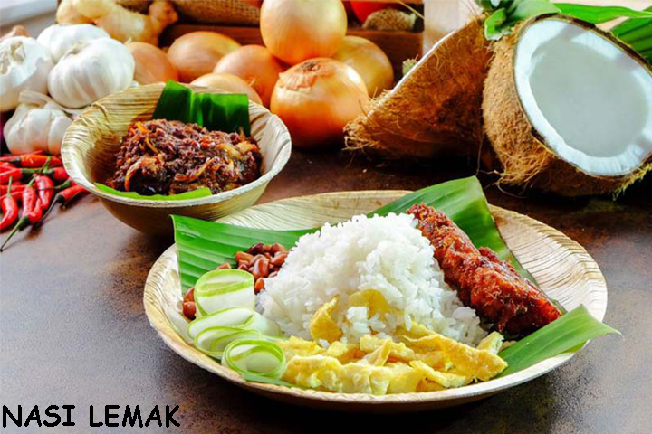 ناسی لماک (Nasi Lemak) برنجی سفید است که در شیر نارگیل بخارپز و سپس در برگ موز پیچیده و سرو میشود. گاهی برای معطر کردن این غذا آن را در ترکیب با برگ پاندانوس و زنجبيل میپزند. ناسی لماک را با معمولاً با سس تند، تخم مرغ آب پز شده، تکههای خیار، بادام زمینی سرخ شده، گوشت مرغ، ترشی سبزیجات و گوشت گاو سرو میکنند.