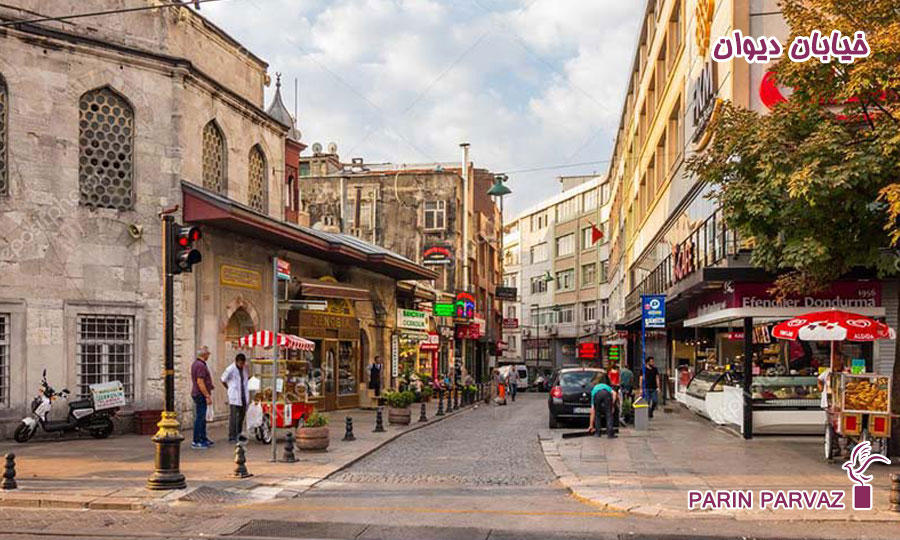 خیابان دیوان از ایاصوفیه آغاز و تا میدان بایزید امتداد دارد . هیپودرم،مسجد آبی،مسجد بایزید و بازار بزرگ در این خیابان و حوالی اش قرار دارد. کافه های توریستی زیادی و رستوران های عالی و فروشگاه های بینظیری در این خیابان قرار دارد .