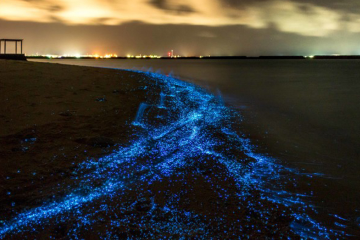 مالدیو کشوری در حاشیه اقیانوس هند است که به داشتن سواحل زیبا، دریای نیلگون و تنوع بی نظیر موجودات دریایی مشهور است ولی در شب جاذبه دیگری از ساحل مالدیو نمایان می شود.ساحل درخشان جزیره Vaadhoo مالدیو ،یکی از شگفت انگیزترین پدیده های طبیعت است. ساحل رویایی وادهو در مالدیو یکی از مجموعه سواحلی است که در بسیاری از رسانه های دنیا به آن قطعه ای از بهشت را داده اند.ویژگی خاص این ساحل در شب نمایان است ، زمانی که آب این ساحل زیبا به صورت کاملا رویایی در تلالو نور مهتاب میدرخشد گویی میلیون ها ستاره کوچک در عمق دریا غرق شده اند، اما در واقع این پدیده نتیجه وجود فیتوپلانکتون ها یا میکروب های دریایی شب تابی که انگار آب دریا آیینه ستاره ها بر روی زمین شده است.این موجودات زنده کوچک هنگامی که درهم می تابند،ازخود نور ساطع می کنند،زمانی که موجها با ساحل شنی برخورد می کنند،پوسته سلولی آنها به سیگنالهای الکتریکی پاسخ داده و نورآبی ازخود تولید می کند.
