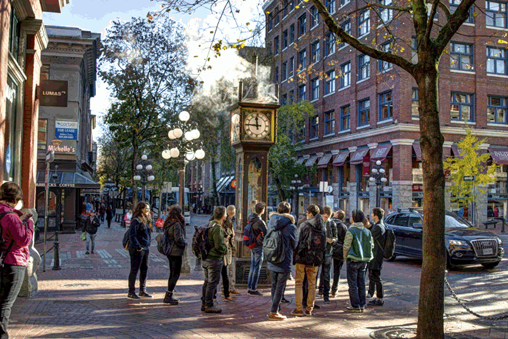 در میانه خیابان «واتر» (Water) در شهر ونکوور، ساعت بخار، این جاذبه معروف گردشگری مانند آهنربایی دوربین بازدیدکنندگان را به سمت سوتهای بخار خود جذب میکند. شاید این جاذبه جزو برترینهای کانادا نباشد، اما جزو مکانهای جالب توجه شهر به شمار میرود.