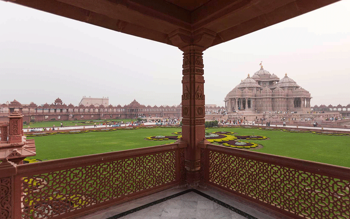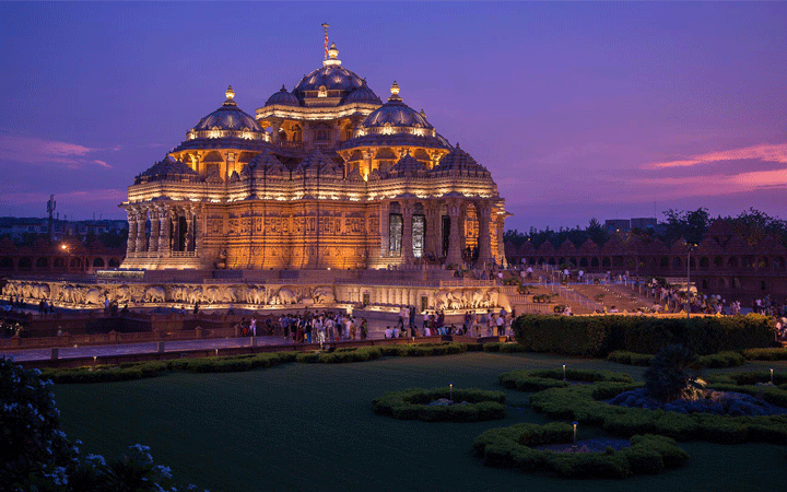 معبد Akshardham بنایی مذهبی و متعلق به هندوان است. در ساخت این بنای بزرگ و باشکوه حدود ده هزار نفر هنرمند و صنعتگر بصورت داوطلبانه نقش داشتهاند. در نقش و اهمیت این معبد در صنعت توریسم دهلی و کشور هند همین بس که ۷۰ درصد کسانی که وارد دهلی میشوند، از این معبد بازدید دارند. ساخت این معبد عظیم و باشکوه از سال ۲۰۰۰ تا ۲۰۰۵ به طول انجامید بنابراین معبد جدید محسوب میشود که معماری آن ترکیبی از سبکهای معماری سرتاسر هند است. بر روی تمامی دیوارها و سنگهای نمای بنا،کندهکاری و حجاریهای دستی صورت گرفته و هزاران نفر در ساخت آن نقش داشتهاند.