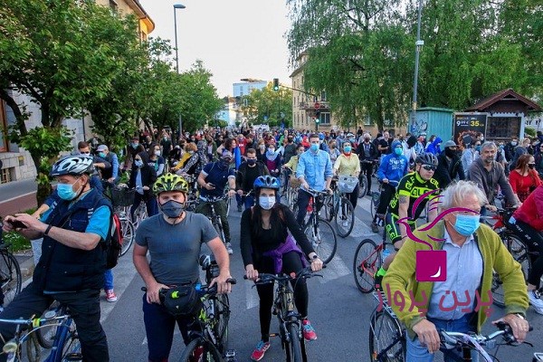 هزاران دوچرخه سوار در پایتخت اسلوونی، لیوبلیانا در اعتراض به قرنطینه که از اواسط ماه مارس تقریبا 2 ماه پیش برای مقابله با ویروس کرونا وضع شده بود به خیایان ها آمدند.